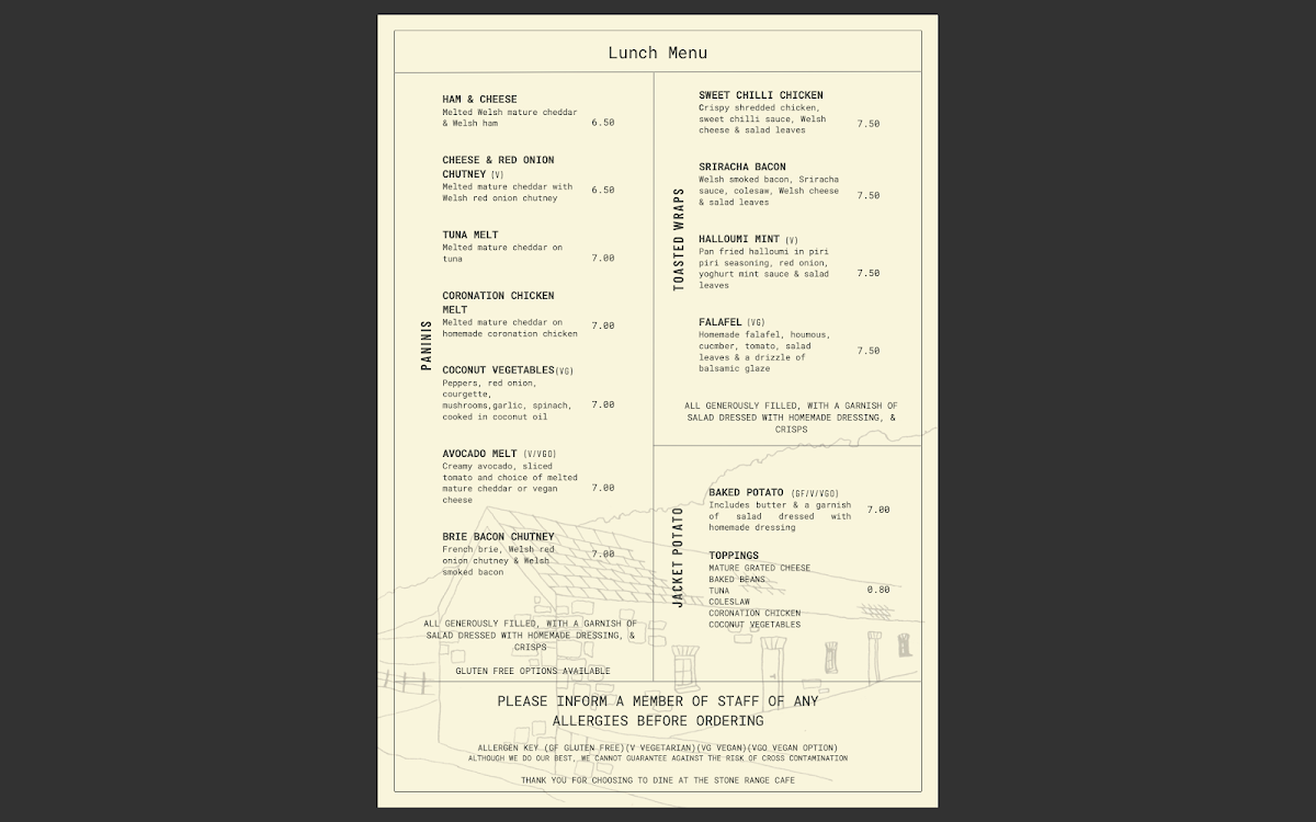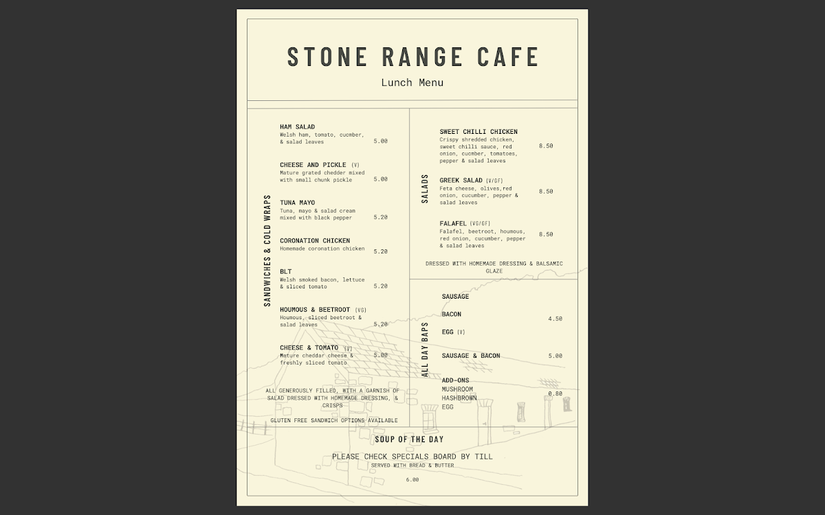 Stone Range Cafe Menu